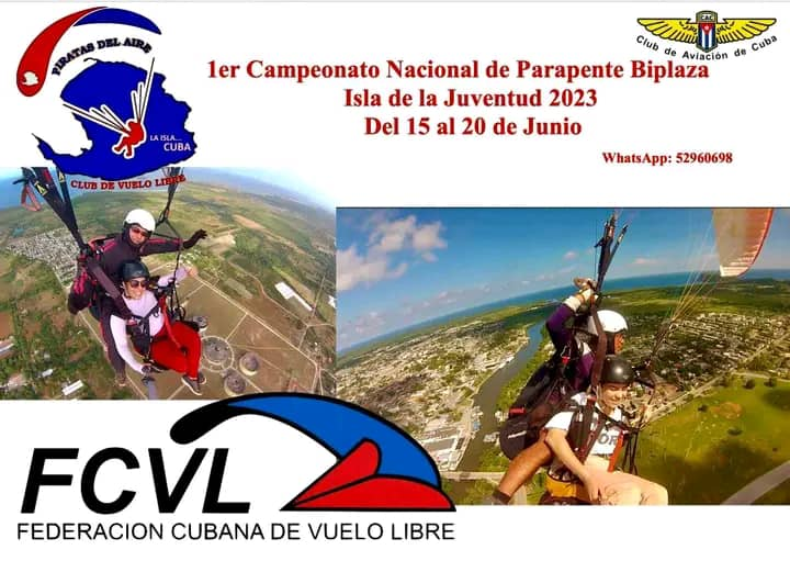 El Club Piratas del Aire en coordinación con la Federación Cubana de Vuelo Libre (FCVL) y con el Club de Aviación de Cuba (CAC) convocan a la participación en el Primer Campeonato Nacional de Parapente Biplaza. Con los objetivos de contribuir al desarrollo del Vuelo Libre en el país e incentivar el progreso del